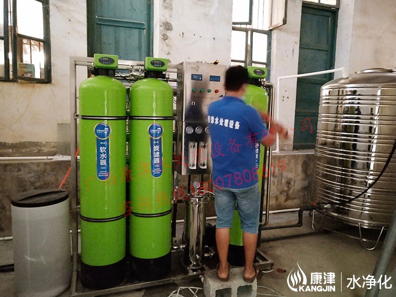 工藝流程:原水箱-原水泵-石英砂過濾器-活性炭過濾器-軟水器-精密過濾器-反滲透設(shè)備-凈水箱-變頻供水-管線機