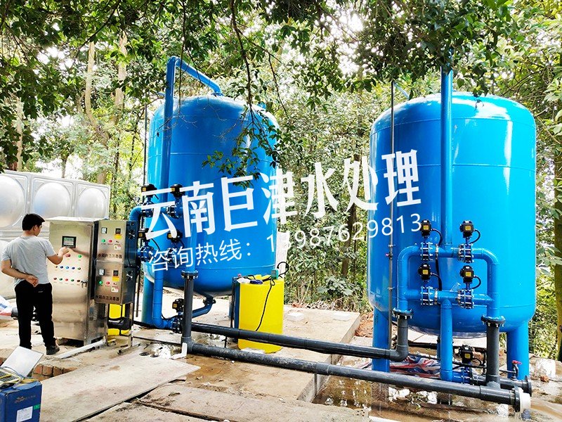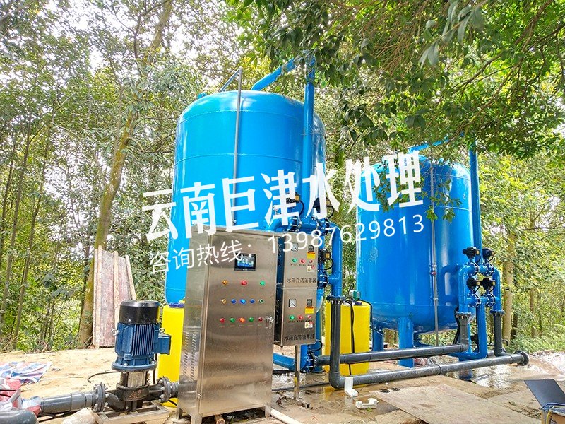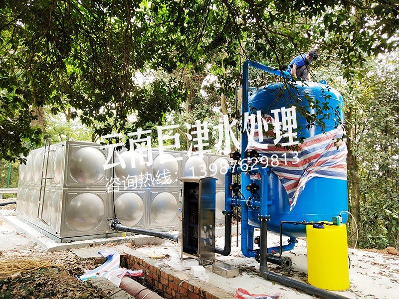項目名稱:麗江湖水凈化工程 設備名稱:50噸壓力式一體化凈水設備 工藝流程:湖水-水箱曝氣消毒-絮凝加藥-石英砂過濾器-活性炭過濾器-精密過濾器-二氧化氯加藥器-凈水池-各用水點...