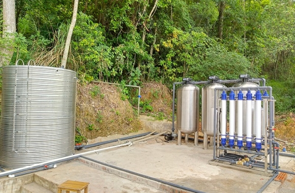 工藝流程:地下水-原水箱-原水泵-錳砂過濾器-石英砂過濾器-活性炭過濾器-精密過濾器-超濾設備-紫外線殺菌-凈水箱-變頻供水-用水點