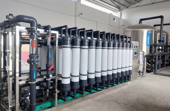 超濾的作用非常廣泛,它可以去除懸浮物、膠體、色度、濁度、有機物、細菌和大腸桿菌等雜質。隨著制膜工藝的發展,超濾的用途也越來越廣泛,目前超濾膜技術已經用于海水淡化、中水回用、反滲透系統的預處理、冷凝水處理和超純水制備中,超濾技術與常規預處理相比,具有標準化設計,投入少,產量高,無需連續加藥,穩定性高,需勞動力少,占地面積小,自動化程度高,操作方便等優點。